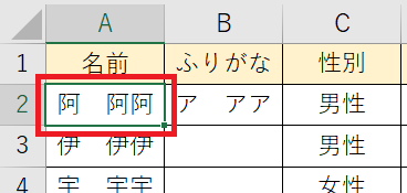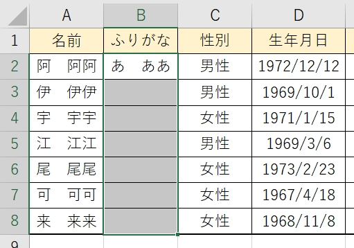 ふりがなが表示されているB2をクリックすると上手くできないので注意だよ!