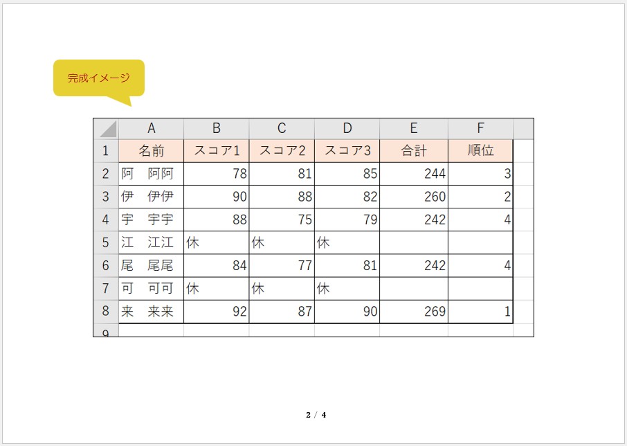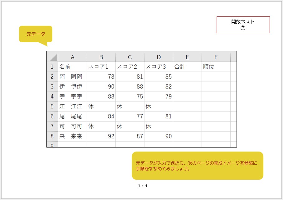 空白のブックに【元データ】を入力していただき、【完成イメージ】を参照に【手順】をすすめてください。
