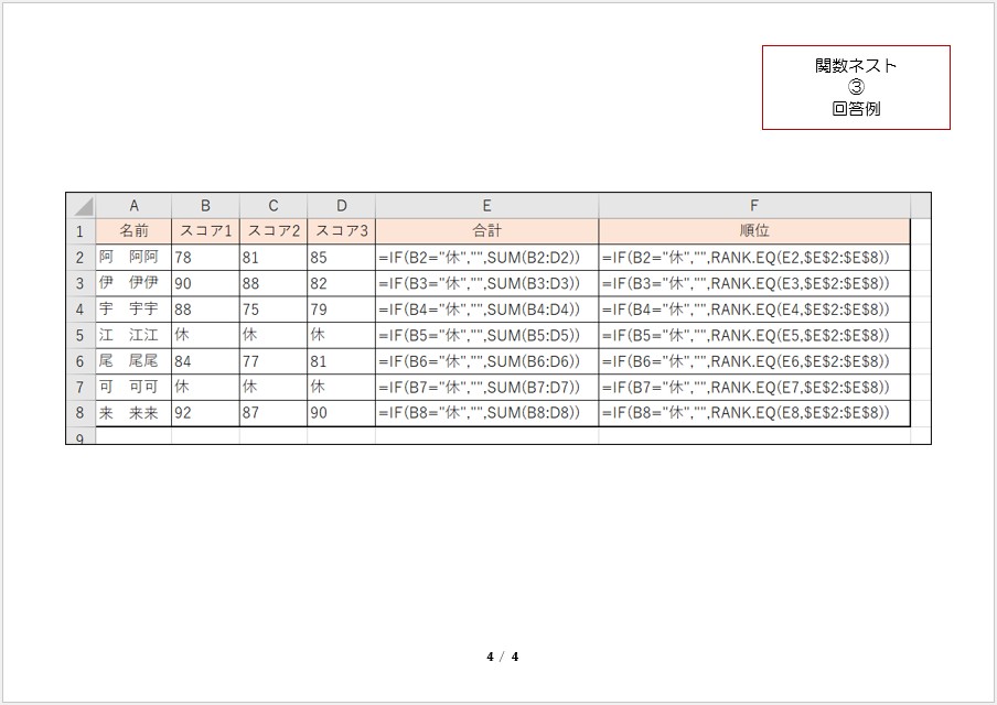 【無料】Excelの練習用問題:関数ネスト(入れ子)③