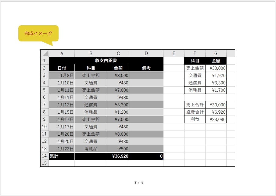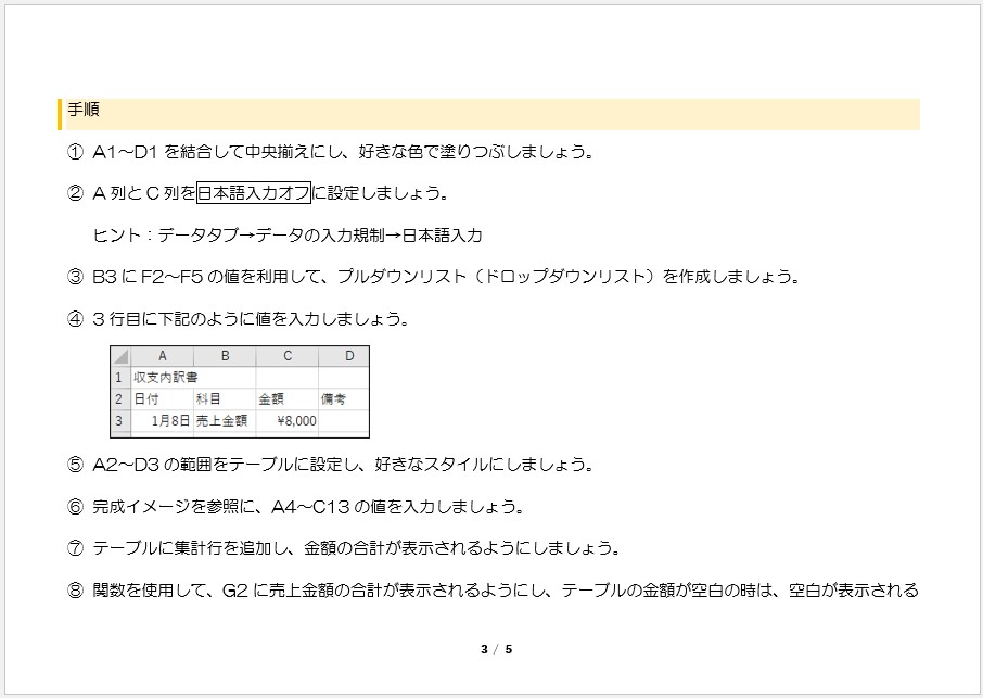 空白のブックに【元データ】を入力していただき、【完成イメージ】を参照に【手順】をすすめてください。