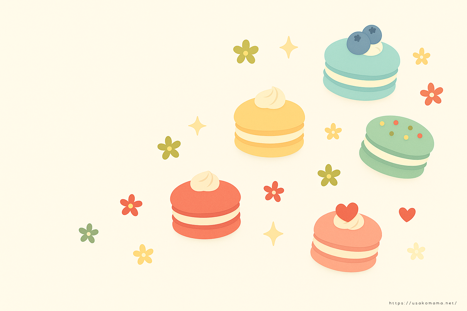 大人可愛いマカロンのパソコン&スマホ用壁紙を無料配布中。春夏秋冬の季節ごとに楽しめるくすみカラーのデザイン。おしゃれで優しい雰囲気の背景画像を今すぐダウンロードしていただけます。