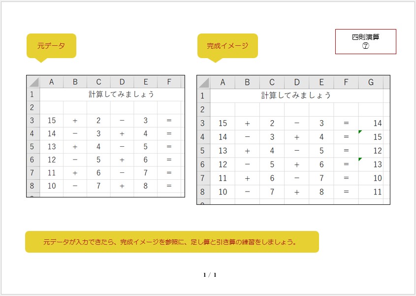 空白のブックに【元データ】を入力していただき、【完成イメージ】を参照に【手順】をすすめてください。